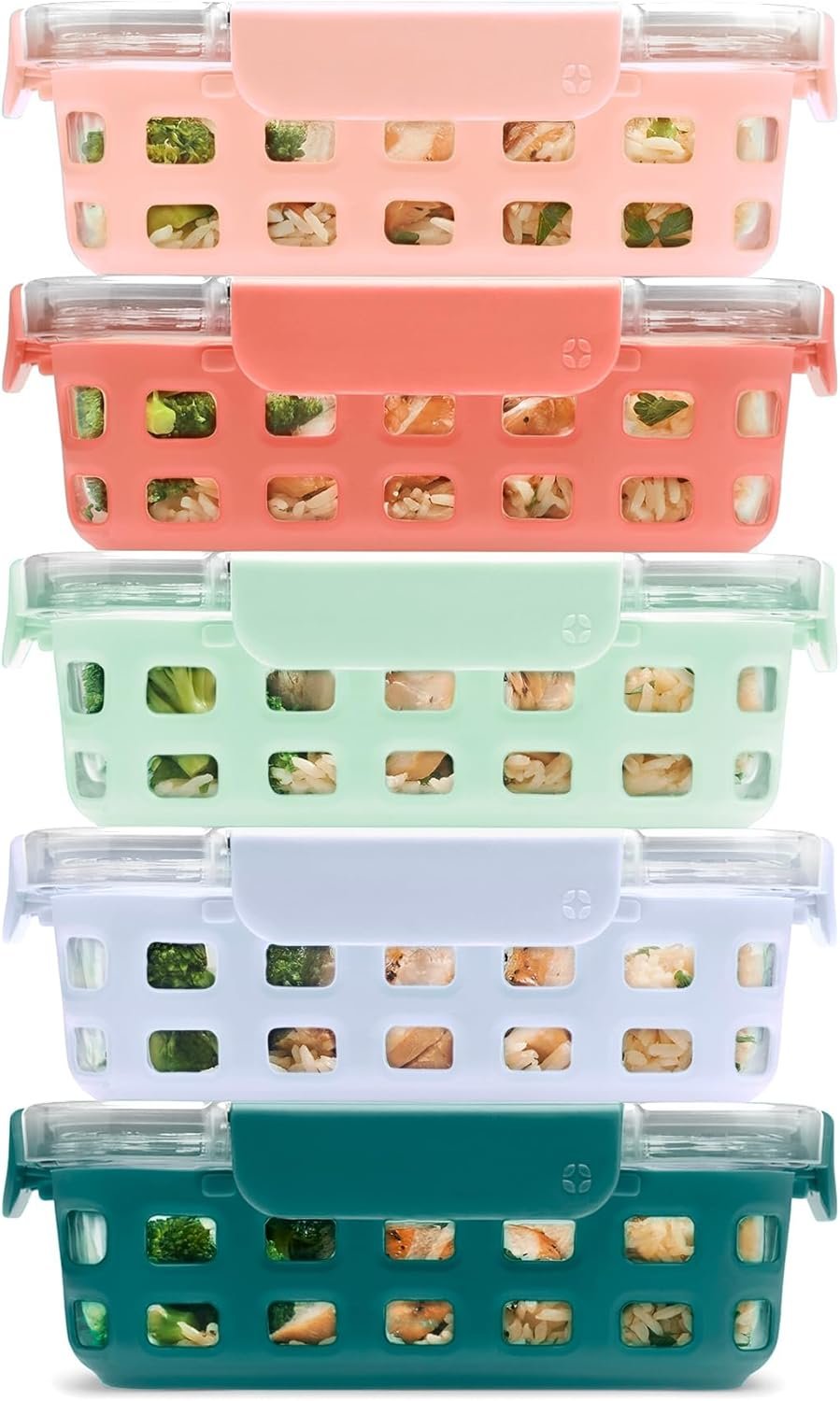 • MEALPREP IN STYLE: Removable extra thick silicone protection sleeve comes in variety of colors to make meal prepping fun. It also protects from chips and breaks and dishwasher and microwave safe.