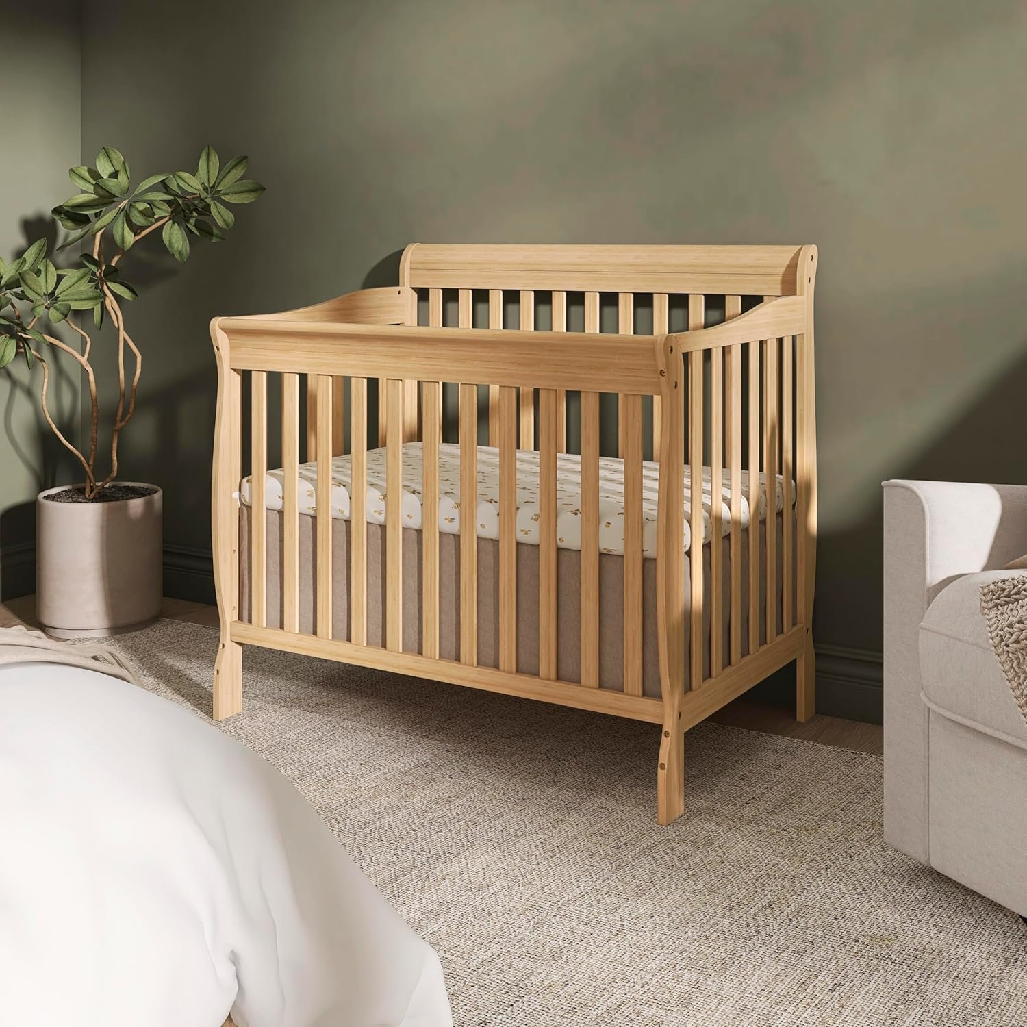 The Dream On Me Aden distinguishes itself from other compact cribs with a thoughtful combination of safety certifications, high-quality materials, and long-term versatility. It’s more than just a smaller version of a standard crib; it’s a complete sleeping system designed for modern living. Many competing products force parents to choose between a compact design and robust features, but this mini crib delivers both.- 4-in-1 Convertibility: This crib’s greatest asset is its ability to grow with your child. It starts as a beautiful mini crib and seamlessly transitions into a mini daybed and a twin-size bed (conversion kits sold separately). This adaptability ensures you get years of use, making the toddler bed conversion a key feature for long-term value. Unmatched Safety Standards: The Aden is Greenguard Gold certified, meaning it’s been screened for over 10,000 chemicals and VOCs to ensure cleaner indoor air. It is also JPMA certified and meets or exceeds all ASTM and CPSC standards. According to customer reviews, this focus on a non-toxic finish provides immense peace of mind. Quality Craftsmanship: Constructed from solid New Zealand pinewood, the frame is both sturdy and elegant. The design includes an adjustable mattress height with three positions, allowing you to lower it as your baby grows and starts to stand, a critical feature for a safe crib.