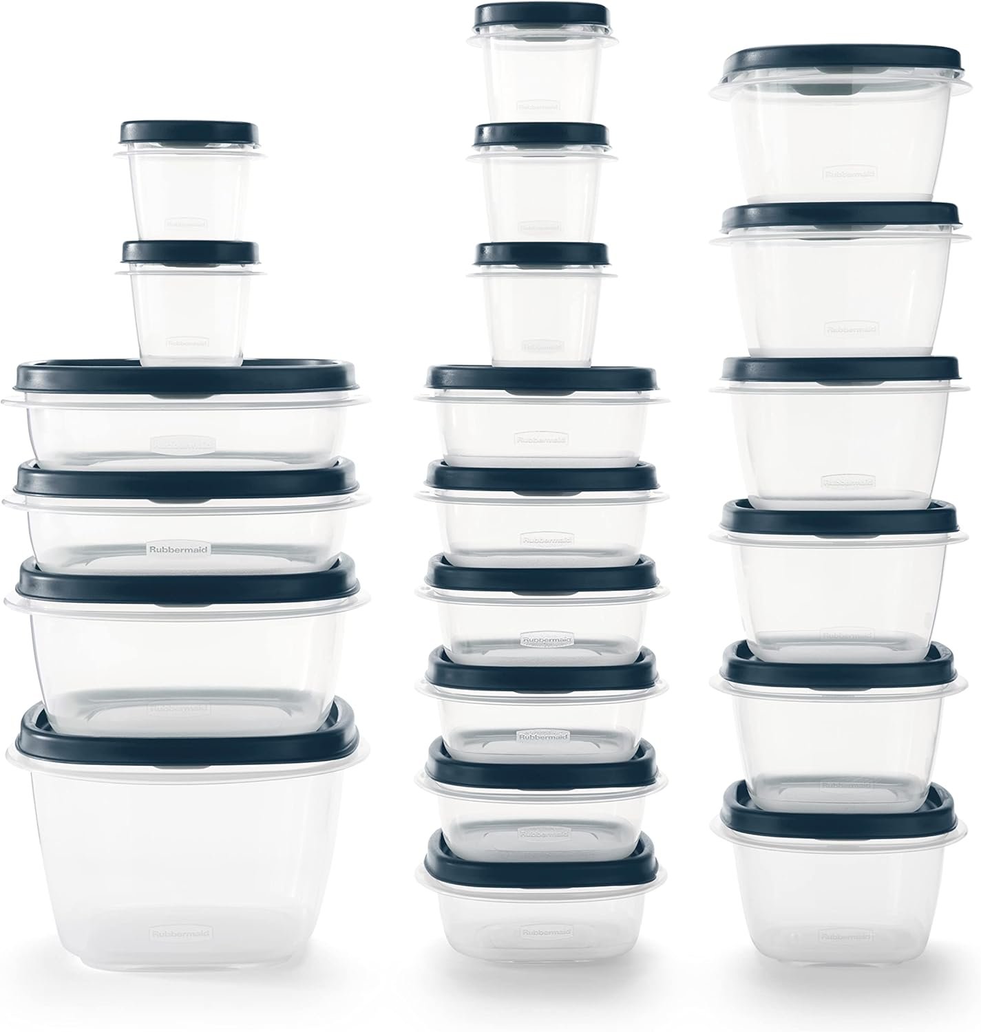 Rubbermaid EasyFindLids Food Storage Containers The Rubbermaid EasyFindLids Food Storage Containers in Special-Edition Insignia Blue offer a modular solution for storing leftovers, packing lunches, and keeping your kitchen organized. With a 42-piece assortment featuring a variety of container sizes, these food storage containers provide versatility for meal prep and everyday use. The key benefit is the space-saving design: lids snap to bases, and containers nest to help reduce clutter. The addition of vented lids on medium containers is practical for microwave use, minimizing splatter. Many users appreciate the durability and performance in the dishwasher and microwave; however, a major trade-off to note is the actual size of the containers. While the set includes many pieces, several customers report that the containers are smaller than expected, which may disappoint those looking for larger options to store family-sized meals. If you need mostly small to medium-sized containers, the Rubbermaid EasyFindLids Food Storage Containers deliver, but be prepared for the more compact sizes.