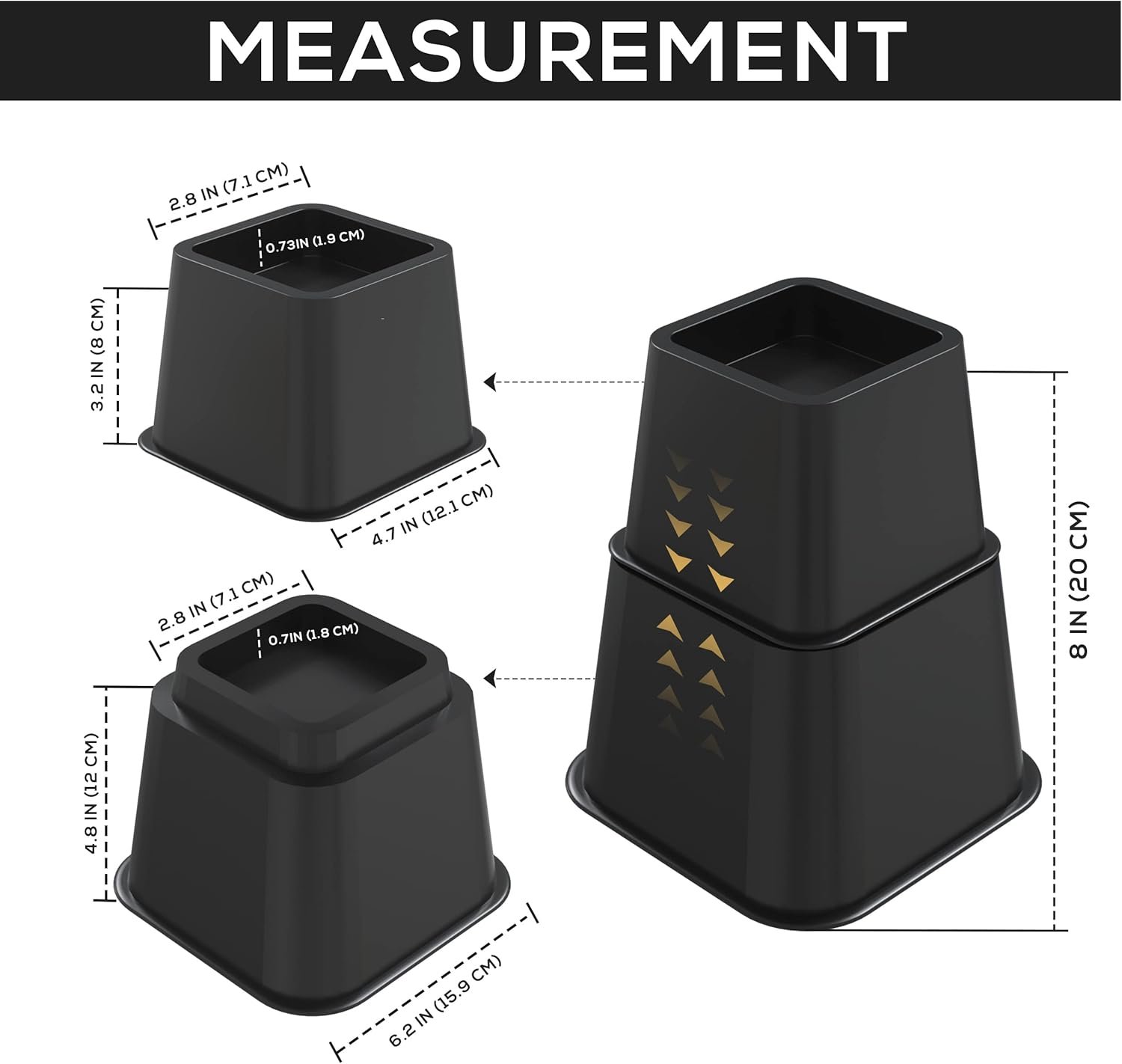 • Customizable Height Options: The key feature is the smart, modular design. You get a set of four large and four small pieces that allow for three different height profiles: 3 inches, 5 inches, or a combined 8 inches. This adjustable elevation makes them incredibly versatile for different bed frames and storage needs.