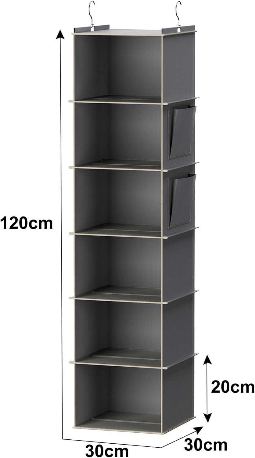 • Sturdy Bamboo Shelf Inserts: Each of the six shelves features two sturdy bamboo shelf insert pieces. This natural, rigid material ensures that every compartment can handle the weight of bulky sweaters, jeans, and even shoes without bending or buckling.